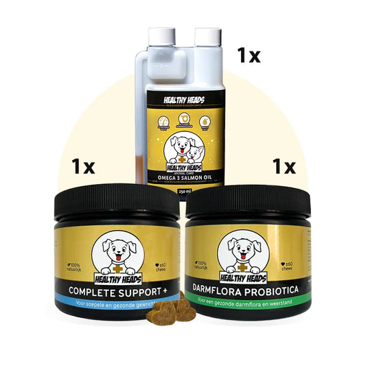 In den Niederlanden leben über 1,5 Millionen Hunde. Sie sind nicht nur Haustiere, sondern vollwertige Familienmitglieder und treue Begleiter. Als Hundeliebhaber möchten Sie natürlich, dass Ihr Hund gesund, fit und glücklich bleibt. Eine gute Ernährung ist unerlässlich, reicht aber manchmal nicht aus. Mit den natürlichen Nahrungsergänzungsmitteln von Healthy Heads können Sie Ihrem Hund die zusätzliche Unterstützung geben, die er braucht – sei es für seine Gelenke, Haut, sein Fell, seine Verdauung oder sein Immunsystem.